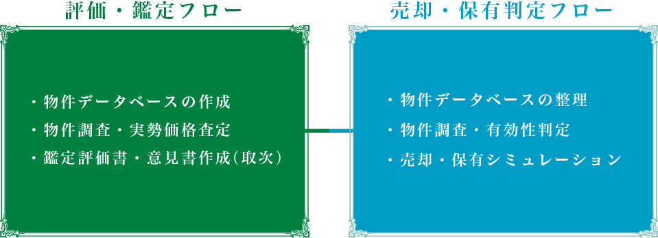 貴社の所有不動産の評価と賃借ビルの適正賃料査定等を実施して、所有ビルの継続保有・売却の判定をサポートします。更に適正賃料の査定によりコス トダウンの実現を図ります。